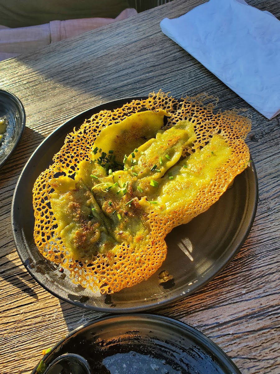 The rhythm here is unhurried but attentive, marked by servers who anticipate needs before they arise and a steady flow of colorful and thoughtfully plated dishes passed with genuine warmth. It’s the kind of neighborhood spot where comfort goes hand in hand with discovery — dumplings and gyoza arrive at the table with an artful balance of aroma and texture that feels familiar yet invitingly new with every bite.